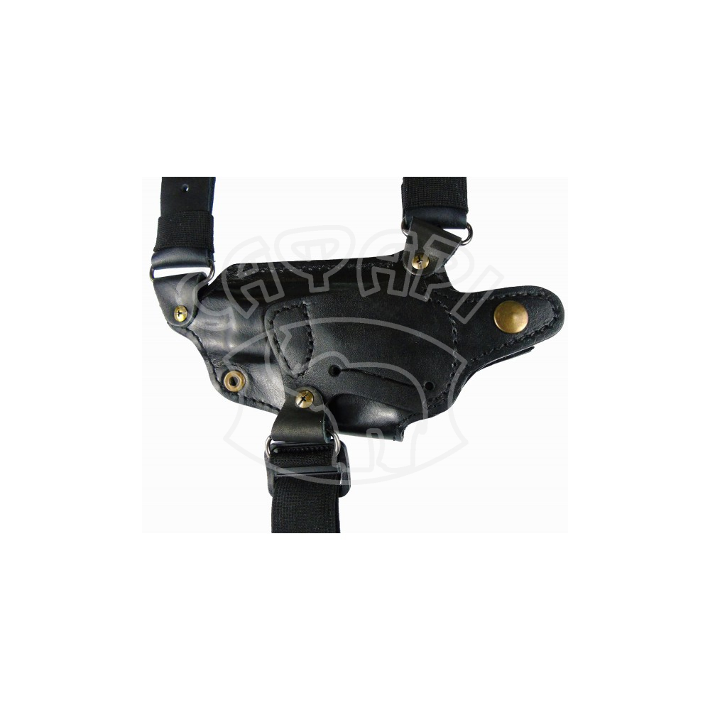 - Кобура оперативна Медан ПМ шкіряна тришарова формована з шкіряним кріпленням та підсумком під магазин розташована таким чином, щоб не заважати під час руху;